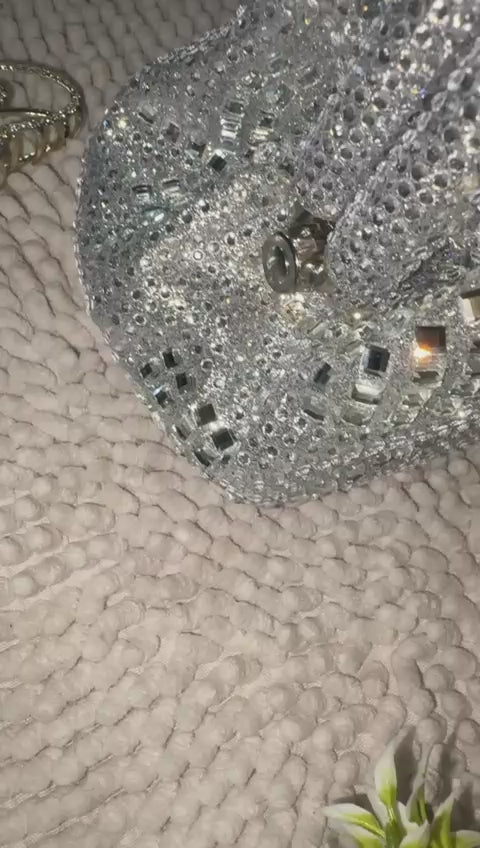 BOLSO DE MANO DE NOCHE PLATEADO CON BRILLO ELEGANTE